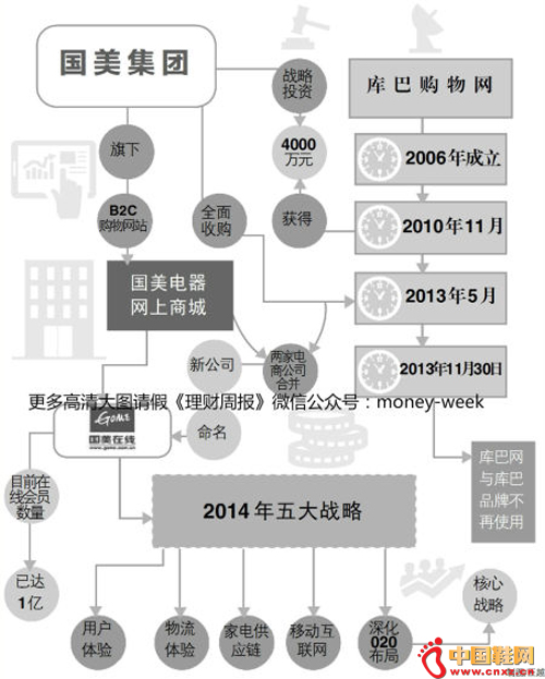 按照当时国美的5年规划,其电子商务将达到150亿元的规模,为了扩大规模,国美在2010年收购了库巴网,后者经营方向与国美类似,是家电网购平台。当时收购完成后,国美采取的是双品牌策略,也就是国美网上商城和库巴网各自独立发展,但是由于两者有一定的竞争关系,存在左右手互搏的尴尬。而且,在收购后,库巴网的业绩表现却差强人意,2011年该网站亏损额就高达1.94亿元。