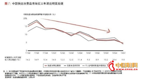 【中国鞋网-要闻分析】过往三年,中国快速消费品增速持续放缓。2013年,随着平均每户家庭快速消费品年支出的增长进一步减缓,各品牌间的竞争日趋激烈,中国市场已然进入了品牌争夺市场份额求发展的新时代。依赖市场增长来推动品牌业绩提升的日子已经一去不复返;未来,品牌业绩的提升将更多源于自身市场份额的提升。