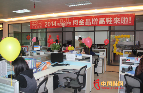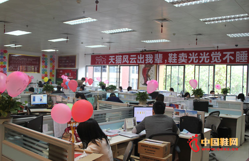 何金昌此次的“双十一”无疑是近三年来最火爆的!目前所有工作人员都在紧张战斗中,大家志气高昂,正如办公室墙上悬挂出的大红横幅标语“天猫英雄出我辈,鞋卖光光觉不睡”,一出冲刺、撞线的压轴大戏正在全力上演!(中国鞋网-最权威最专业的鞋业资讯中心。合作媒体: )