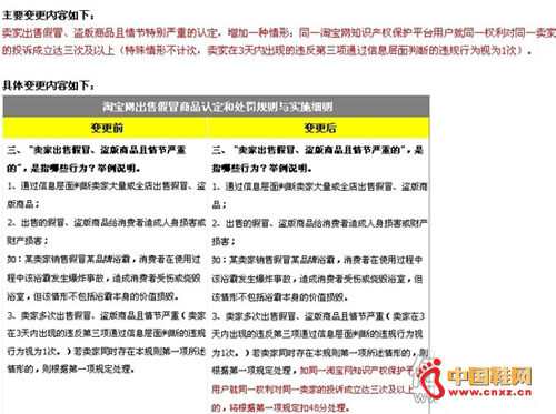【中国鞋网-电商频道】11月25日消息,日前,淘宝网对出售假冒商品的认定和处罚规则进行了修改,进一步打击商家的售假行为。