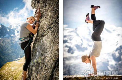 【中国鞋网-攀岩新闻】来自法国沙莫尼(Chamonix)的美女舞蹈教师、模特阿加特·彼得里尼(Agathe Petrini)在悬崖峭壁间练习舞功挑战重力,摄影师亚历克斯·布塞抓拍到其一系列令人感到惊心动魄的照片。