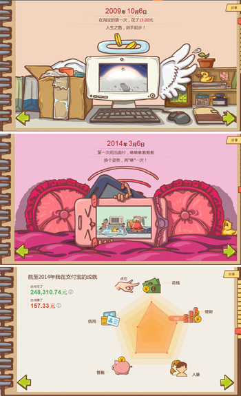 2014年年底的支付宝对账单有格外特殊的意义:2004年 12月8日,支付宝正式成立,至今正好十年,今日,支付宝发布十年对账单。