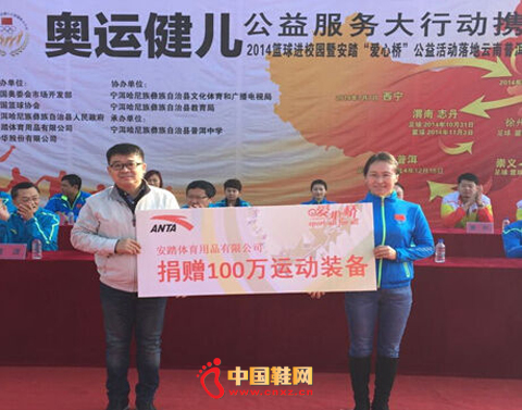 【中国鞋网-品牌动态】12月16日,奥运健儿公益服务大行动携安踏爱心桥公益项目来到了云南省普洱市宁洱县。中国奥委会市场开发部主任李桦、体育用品有限公司副总裁张涛携短道速滑奥运冠军王濛、击剑奥运冠军李娜、冬季雪上项目世界冠军程爽以及跳水世界冠军李娜,前国家男篮队员莫科、刘子秋,足球教练员余东风共同出席了活动。安踏向普洱市体育局赠送了价值100万元的运动装备,帮助当地孩子们享受运动的乐趣。