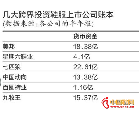 确实如此,纵观此轮涉足投资的6家鞋服上市公司,其在过去黄金发展时期确实有着丰厚的原始资金积累。截至今年6月30日,七匹狼账上有高达22.61亿货币资金。货币资金在10亿-20亿之间的则有美邦、中国动向、九牧王。