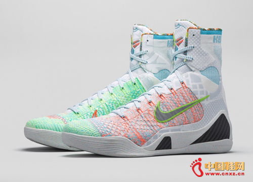 为庆祝这双改变游戏规则的篮球鞋,耐克篮球设计团队结合过往不同Kobe 9Elite上的配色及图案元素,设计出KOBE 9 EliteWhat The系列。KOBE 9 Elite What The设计结合过往KOBE 9的配色及图案KOBE 9 Elite What The的独特设计包括了配合同色调反光图案的混色Flyknit鞋面,荧光的斑点中底,以及混合不同图案的鞋帮内里。