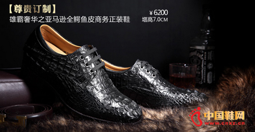 何金昌增高鞋精品定制进口全鳄鱼皮内增高皮鞋