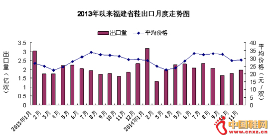 【分析】2014年1-11月福建鞋出口情况