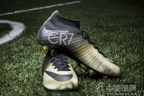 【中国鞋网-时新装备】为庆祝基斯坦奴朗拿度(Cristiano Ronaldo)日前第三次获颁金球奖,其赞助商运动品牌 Nike 便特别设计了 Mercurial CR7 别注版主题配色设计来大肆庆祝一番。新款 Mercurial CR7 鞋身呈金色,而鞋面更镶有微钻石,尽显 C 朗的皇者气派。回顾去年,这位足球明星的成绩确实相当耀眼,不仅代表球会及国家队上场 60 次,射入 61 球,并带领球会皇家马德里赢得第 10 次欧联锦标,这次获颁金球奖可真是当之无愧。(合作媒体: )