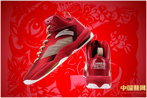 【中国鞋网-品牌动态】2015Chinese NewYear Celebration以中国红色为主配色,是专门为新年制造的“中国年味儿”的全明星款。整体外观的设计十分简约流畅,流畅的线条让人们感受到了球鞋本身的美感。这双鞋的鞋面采用了PP熔断工艺,透气窗似的设计使得鞋面可以提供很好的透气性而且不易变形。领口的模压结构也为穿着者的踝关节带来了良好的支撑保护。前掌A-Core磁芯技术和后掌的A-Jelly弹力胶技术具有良好的抗压缩性和防变形能力,可以提供良好的缓震性。可以说这是一双性能十分出色的篮球鞋。