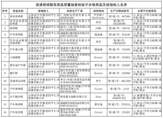 吉林省工商局发布流通领域鞋类商品质量抽检结果