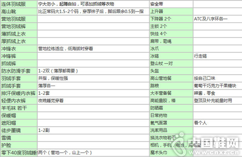 【中国鞋网-出行常识】这是为几个攀登朋友准备,基于个人攀登经验,仅供参考!装备不是最主要的,但却是攀登的重要保障。了解装备的使用及自己使用习惯,可以有效提高攀登效率及安全性。