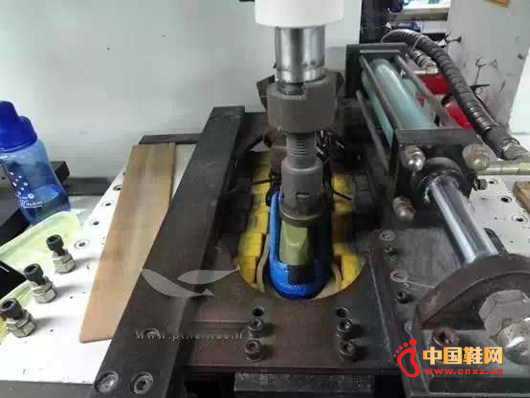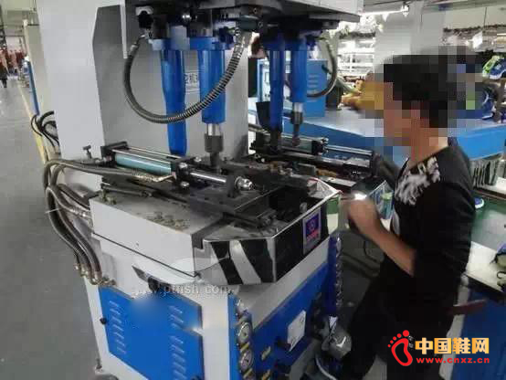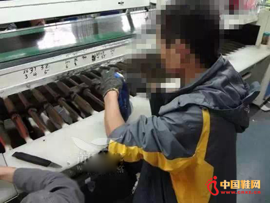 制作鞋子裁片:也就是把材料用裁刀裁剪出来,操作这种机器操作起来相当危险,工人的手指被切下来是屡见不鲜的!(此工艺将来会逐渐被激光裁床所取代,激光裁床一般有单头,双头,三头,五头,CAD画好,然后用激光投影在材料上描好线条,上裁床,高温激光切穿)