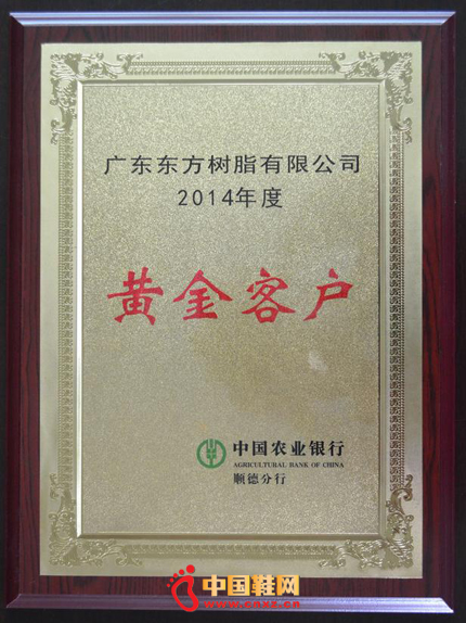 据悉,“黄金客户”评选要求非常严格,不仅要求企业规模大、品牌硬,而且还要求企业信誉高、效益好,属“优势产业”,在广东省、全国乃至全球都享有较高知名度。广东东方树脂有限公司是胶粘剂行业领导品牌,曾参与两项国标起草制定,拥有5万多平米生产基地,1000多平米研发大楼,并与华南理工大学合作,先后承担多项省级产学研合作项目和科技攻关项目,连续八年纳税1000万元以上,是农业银行顺德分行优质重点客户之一。(中国鞋网-最权威最专业的鞋业资讯中心。合作媒体:)
