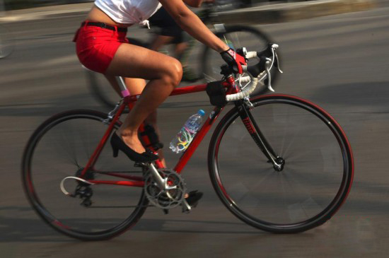 墨西哥举行高跟鞋自行车赛 迎接妇女节(图)