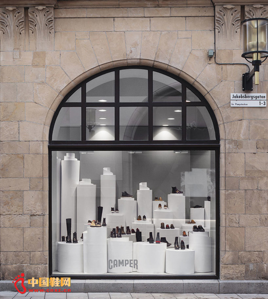 赶巧的是,就在本月初,Nendo 为另一家品牌 Camper 设计的斯德歌尔摩零售空间也刚刚亮相,用的则是卷纸状结构的一个个错落有致的柱子,用来展示鞋子。每个展台的鞋子下方都隐藏着 LED 灯,发出漫射的光线,进一步烘托出 Camper 鞋子的三维立体感与轻质的特点。(中国鞋网-最权威最专业的鞋业资讯中心。合作媒体: )