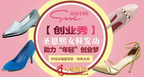 源自韩国的时尚女鞋品牌——圣恩熙,就是一家以专注打造韩版女鞋的真皮女鞋品牌。40多位设计师,充分糅合东方女性的柔美与国际时尚潮流元素,以精选优质皮革,经过108道手工程序打造而成,完美释放女性的女人味。从设计到细节都透露出精致的用心,让舒适靓丽的圣恩熙女鞋成为时尚女性的最爱。每年为全国600余家终端店面供应自住设计的2000多款新款鞋履,圣恩熙女鞋所到之处无不引起抢购热潮。自2007年在中国上线以来,就受到了都市白领和时尚人士的追捧,成为了中国销量第一的韩风女鞋!