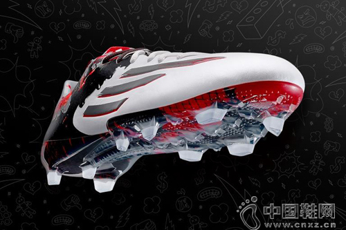【中国鞋网-时新装备】继去年 11 月发布的 mirosar10 专属球鞋之后,运动品牌 日前又为当世球王 Lionel Messi 推出一款全新的 Pibe de Barr10 签名战靴。新鞋的设计灵感依旧源自于 Messi 的故乡罗萨里奥,并将当地艺术家 Ignacio Valenti 所创作的涂鸦覆盖于鞋面之上,从而与纯白鞋面形成对比,象征 Messi 既优雅又极具侵略性的球风。除此之外,这款鞋还搭载了 Speed Traxion 和 360˚ DRIBBLETEX 技术,为 Messi 提供更好的足部穿著感受和保护性。(合作媒体: )