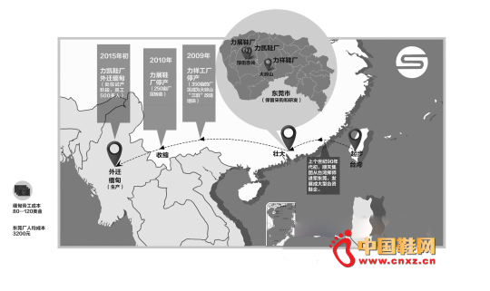 自从金融危机以来,东莞全球生产规模最大的运动鞋生产企业———裕元集团、中国最大的生产企业———华坚集团,以及大力卜集团(绿洲鞋业、绿扬鞋业)、顺天集团(力凯鞋业)等多家风靡全球的制鞋集团,纷纷都在转移。