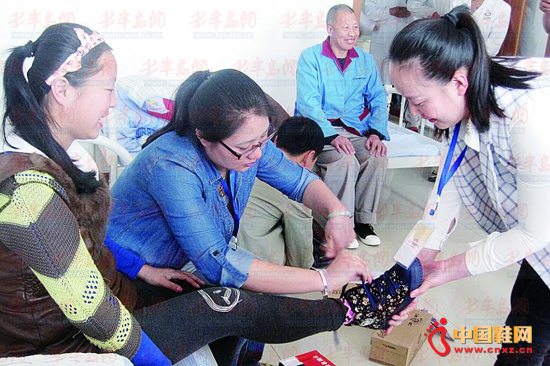 即墨企业献爱心 为残疾人免费送去百双鞋(图)