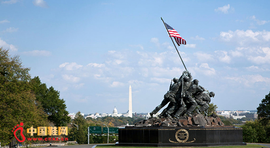 第二次世界大战之后,为了纪念在战争中牺牲的美国海军陆战队战士,美国政府在华盛顿国家公墓陵园里兴建了这座硫磺岛纪念碑。当时,创作者根据一张新闻照片,写实地塑造了六位冒着枪林弹雨将美国国旗插上硫磺岛折钵山的战士形象。