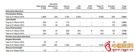 现在,Christopher Bailey 赚了多少钱终于水落石出了。根据 Burberry 年报显示,自去年 5 月担任 Burberry CEO 到 2015 年 3 月 31 号发财报,Christopher Bailey 赚了 790 万英镑,包括 100 万英镑的工资,42.4 万英镑的津贴,一份 180 万英镑的奖金,440 万英镑的共同投资计划和 30.3 万英镑的养老金。