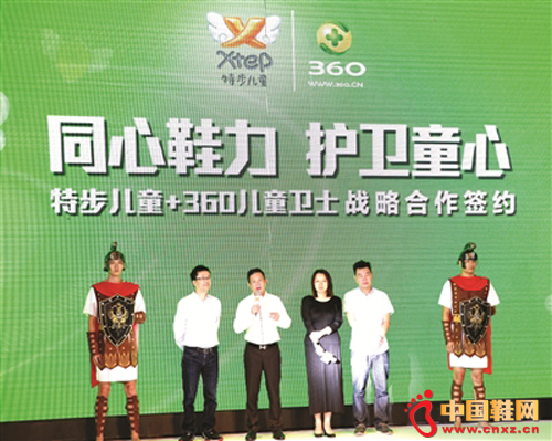 【中国鞋网-品牌动态】昨日, 特步集团与360公司在厦门签订战略合作协议,以共同开发和提升智能穿戴产品为目标进行全面合作,首款落地产品将是基于儿童安全领域的儿童智能定位鞋,预计将于今年年底面市。特步集团总裁丁水波、常务副总裁叶齐与360公司高级副总裁陈杰一同出席了签约仪式。