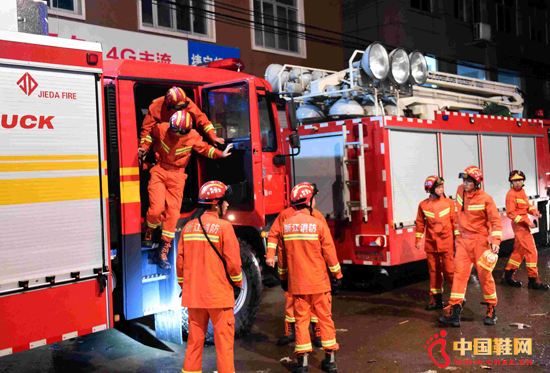 【中国鞋网-滚动快讯】7月5日凌晨,消防官兵在发生厂房倒塌事故的鞋厂外待命。