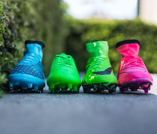 “雷暴”套装足球鞋采用了最为亮眼的配色,C罗、内马尔、格策、博尔滕将分别穿上粉红色的刺客、荧光绿的毒锋、天蓝色的鬼牌和苹果绿的传奇征战新赛季。