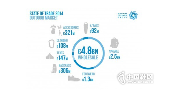 【中国鞋网-国际动态】近日,欧洲户外产业联合会(EOG)发布了《2014欧洲户外市场贸易状态报告》的一些核心数据。