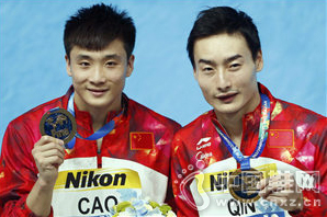 【中国鞋网-赛事追踪】2015年喀山世界游泳锦标赛继续进行,跳水赛场又产生一枚金牌,中国队的曹缘/秦凯获得男子双人3米板冠军。预赛中出现失误的曹缘/秦凯在决赛中发挥稳定,他们依靠最后三跳的高质量动作保住领先位置,他们以471.45分获得冠军。这是中国跳水队本届世锦赛拿到的第6枚金牌,秦凯连续5届世锦赛夺得双人3米板冠军。俄罗斯的库兹涅佐夫/扎克哈洛夫以12.27分之差屈居亚军,英国的拉夫尔/米尔斯拿到季军。