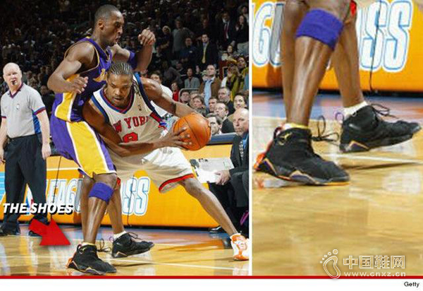 这双鞋是以Air Jordan7为基础,为科比脚型定做的。鞋子主体为黑色,鞋底有洛杉矶湖人队传统的紫色和金色花边,鞋面上还有Air Jordan的金色标志和科比的球衣号码“8”。在2003年2月7日对阵纽约尼克斯队的比赛中,科比曾经穿着这双战靴出场,27投17中狂砍46分,外加6个篮板3次助攻,率队114-107取胜。