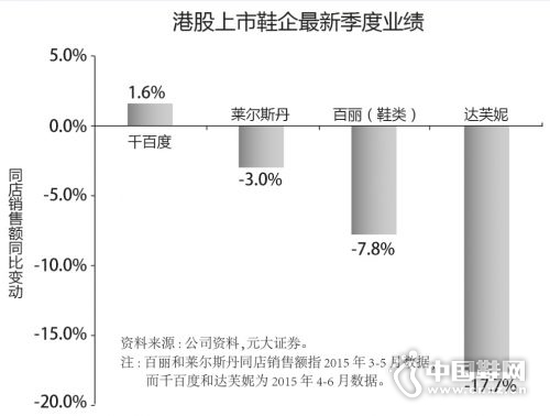 不久前刚发布的上市鞋企中期业绩显示,百丽、、达芙妮等鞋企的同店销售纷纷增长放缓,有的甚至出现大幅度下滑现象。元大证券在对千百度、莱尔斯丹、百丽、达芙妮这四家在港上市鞋企最新季度业绩表现进行比较后,更是直截了当地把达芙妮第二季度的销售额称作“在香港上市同业中最差”。