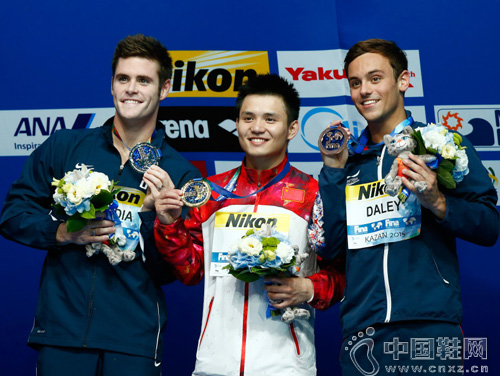 【中国鞋网-赛事追踪】2015年喀山世界游泳锦标赛继续进行,跳水赛场产生最后一枚金牌,中国队的邱波如愿夺冠。在跳水男子10米台的决赛中,邱波从第三跳开始后领先,之后他依靠出色发挥不断巩固优势,最终以587分拿到金牌,他实现了世锦赛男子10米台的三连冠。另一位中国选手杨健发挥失常只排名第10,美国的博迪亚和英国的戴利分获银牌和铜牌。邱波的金牌是中国跳水队在本届世锦赛上拿到的第10枚金牌,至此跳水项目落幕,中国队取得10金、3银和2铜的不俗成绩。