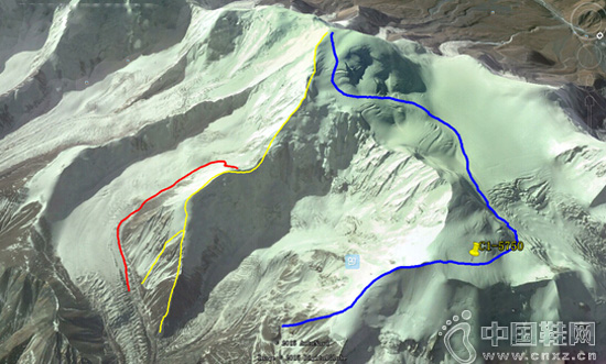 蓝色:东北山脊转北坡登顶路线(中国鞋网-最权威最专业的鞋业资讯中心。品牌推荐: )