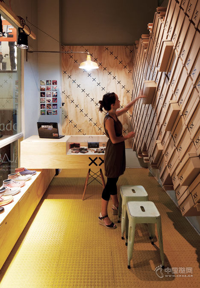 值得一提的是,网格状的鞋店设计案例不少,比如 Move 建筑工作室做的这间位于圣地亚哥的鞋店。