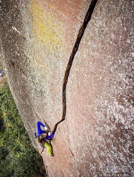 瑞士女教师征服中国绝壁 徒手攀爬305米