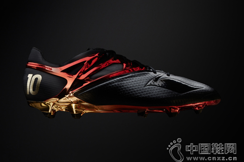 【中国鞋网-时新装备】已有四座 Ballon d’Or 金球奖在手的 Lionel Messi,极有可能在今年的评选中第五次封王,从而创下金球奖历史上一个新的记录。为了纪念这位足球史上最出色 10 号球员的伟大成就,最近 adidas 又特别打造了一双 Messi 15「10/10」限量版战靴。这款鞋采用了黑色鞋身为基础,辅以鞋面上类似浮雕的 Messi 专属 Logo,以及后跟位置的金色数字「10」象征球王身份,此外后跟鞋钉同样采用了电镀金色的设计增强吸精度。据悉这双鞋仅限量打造了 100 双,其中 89 双将于今年 10 月 10 日正式发售,并且只有 Messi 本人所著用的 US8.5 码可供选择,而另外 11 双将由 Messi 本人和他挑选出的 10 位青年才俊所拥有。