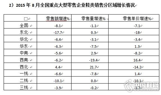 2015年8月全国鞋类消费市场情况