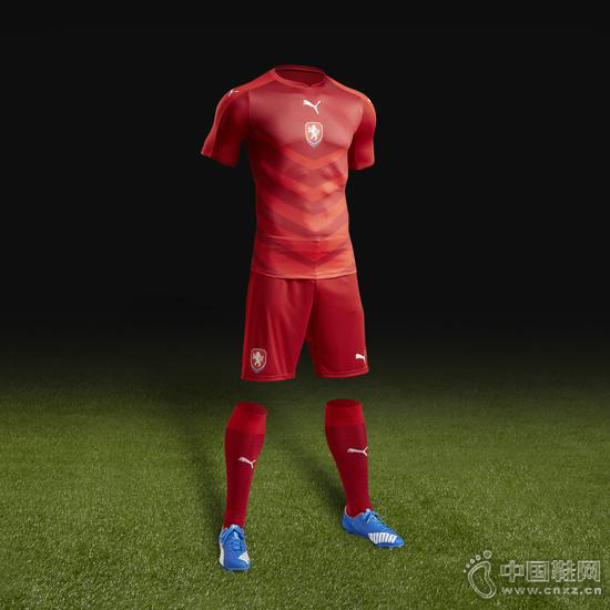 捷克国家队新款主场队服的设计源于晋级1996年欧锦赛决赛的那支伟大球队。队服正面采用动感图案,以捷克足协徽标为灵感,沿袖口镶织有条纹,臂下布置有网眼,更利于身体透气。球衣领部设计采用前翻式水手领,别具特色。PUMA标志与捷克足球协会徽标则置于球衣胸部正中。除了徽标上加入了纯蓝细节装饰以外,整套队服(含短球裤和球袜)采用了全红配色。