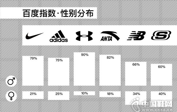 搜索 UA 的消费者 90% 都是男性,最“中性”的则是 New Balance