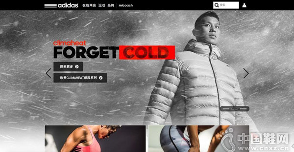 整合了旗下三个品牌的阿迪达斯是所有官网中最混乱的。经常会跳转到始料未及的页面或国外的官网页面,有些 Banner 可能会连接到无效地址。另一个问题是翻译不完全,甚至首页的当季主打产品系列也是英文版(你得点进去才会看到中文版的广告),但他们的产品详情页又过于“本土化”,会出现“宝贝详情”、“宝贝图片”这些字眼,让人以为误入淘宝。