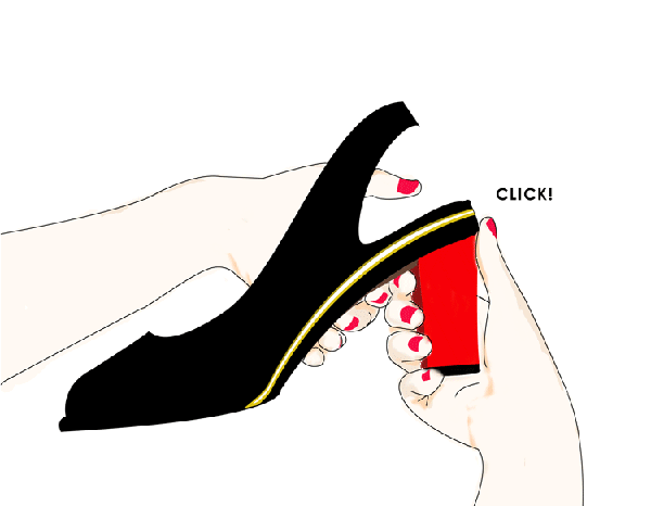 好消息是现在有个鞋履品牌 Tanya Heath Paris 设计出可更换鞋跟的鞋子,一双鞋从平底、小细跟到中跟、粗跟都能随时变换,而同一支鞋跟又可以和他们出售的不同风格鞋款相对接,不管是短靴还是系带凉鞋。这样你可以只穿一双鞋,带上一两种鞋跟就可以正装出席公司早会、中午穿平底或粗跟出门办个业务、晚上小细跟去赴约。