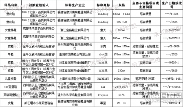 儿童鞋质量抽检不合格名单