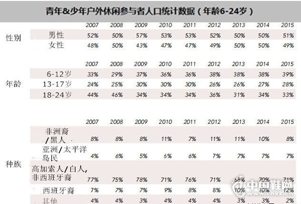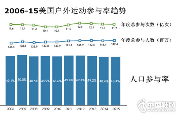 【中国鞋网-国际动态】2015年美国青年&少年户外运动总参与次数达:47亿次(年龄6-24岁)