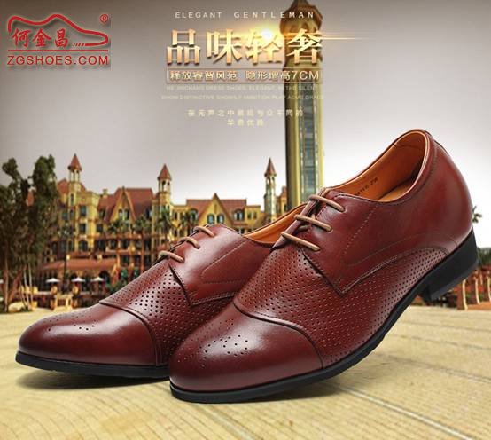 何金昌的内增高鞋走中高端市场定位,其制鞋材质采用的优质头层牛皮,猪皮内里打造的鞋品,档次设计,精湛工艺,舒适耐穿,透气性能极佳。风格时尚而尊贵,别致而丰富。让人一看都禁不住诱惑,男人都应该拥有一双好鞋,才能走得自信。