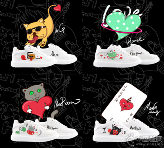 【中国鞋网-滚动快讯】近日,品牌与九零后插画师A.L跨界合作,推出了4款原创手绘插画小白鞋,并以“独而不孤”的新型定制模式,在线上开放了即时闪拍和可定制的限量预售活动。不仅每一双定制鞋款上的插画都由A.L亲手绘制,A.L还根据顾客的留言在鞋侧设计上他们的名字,每一双鞋都独一无二。