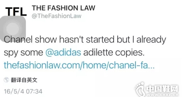 Chanel涉嫌抄袭adidas消息由美国媒体TFL在Twitter发布,不过后来被删除,TFL没有公布删除的原因。从产品观察,两者的拖鞋颜色和款式都相似。在大秀倒数来临之前,Chanel和adidas没有对这起涉嫌抄袭事件做任何回应。