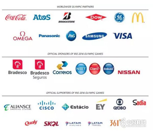 赞助的规模和范围分为三大类:全球合作伙伴、正式赞助商和正式支持商。根据里约奥运官方网站上的统计,一共有29家赞助商,其中巴西企业占到10家以上。