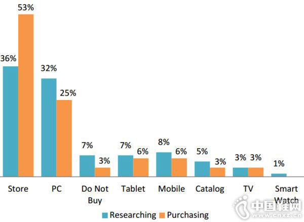 普华永道 2016年对全球 25个国家的 2.3万名消费者做了调查研究。结果显示,目前,实体门店的购买比例高于搜索比例;而PC 网页端的搜索比例要高于购买比例。(图3)