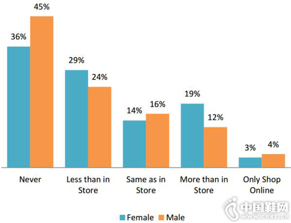 据美国服装尺码技术研发公司Body Labs 今年四月的研究表明,女性消费者相比男性消费者,更热衷于网购。(图4)